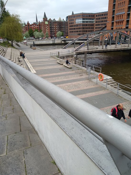 A major redevelopment in Hamburg, HafenCity, is being built atop former port and docklands facilities. The project combines the red brick buildings of the UNESCO-listed Speicherstadt district with new construction. A major goal of the project is flood protection through cleverly combining low-lying promenades for recreational use with streets and buildings that are elevated, typically by 25 to 28 feet.