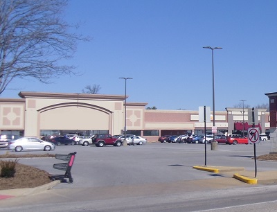 Immediately Below: Here is a suburban setback in front of a grocery store with other smaller shops in the same strip-style development. Bottom Photo: This shows the historic commercial district buildings across the street from the grocery store; buildings on this block face were constructed at varying times with a zero or near-zero setback of the front façade from the sidewalk. Many communities have asked us how to remedy this situation. If the grocery store building is unlikely to be redeveloped soon, the city might engage a developer to build a shallow building in front of the grocery store and extending to the sidewalk. Such shallow buildings are called liner buildings; each storefront would have a front entrance on the sidewalk and a rear entrance from the parking lot. Investigate this approach carefully though, since the shallow buildings usually result in small commercial spaces.