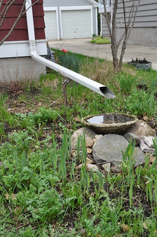 A downspout could end at a bird bath.