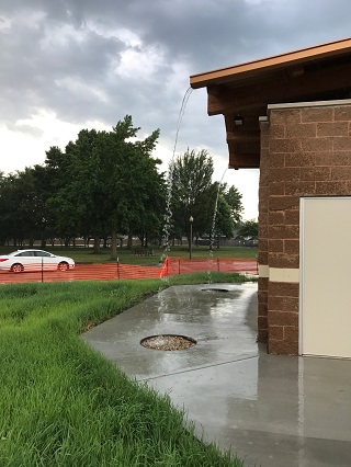 There we helped develop a very large park pavilion with a restroom underneath it. We collect the rain water off of the pavilion roof and store it below ground in a 1700-gallon cistern. The collected water in turn is used to flush the toilets as a non-potable source for something that we typically use potable water for. It’s a great little cycle of life piece that starts to show people why rain water is such an important attribute of our environment. By capturing and re-using it, we are now reducing our use of potable water, which has to be cleaned to a certain point with chemicals so that we can drink it, and all we are doing is flushing toilets with it. So, it’s a great way to rethink our water use.
